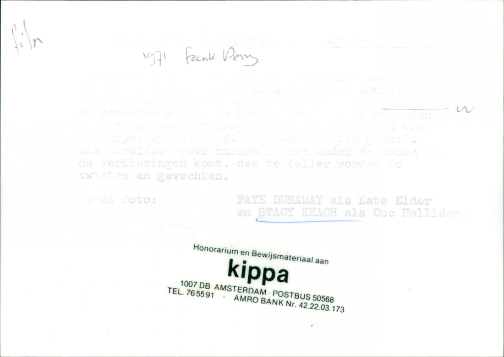 ENG: Doc film stars Stacy Keach, and Faye Dunaway DUTCH: Doc-filmsterren Stacy Keach en Faye Dunaway ENG: Doc film stars Stacy Keach, and Faye Dunaway DUTCH: Doc-filmsterren Stacy Keach en Faye Dunaway