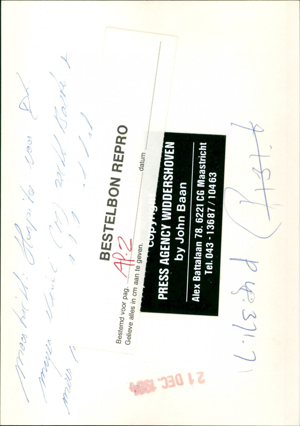 All the original vintage images are sold without watermarks. The prints are all over 30 years old and have been in the storage of the newspapers for decades. We sell them in the same conditions they were given to us by the archives.