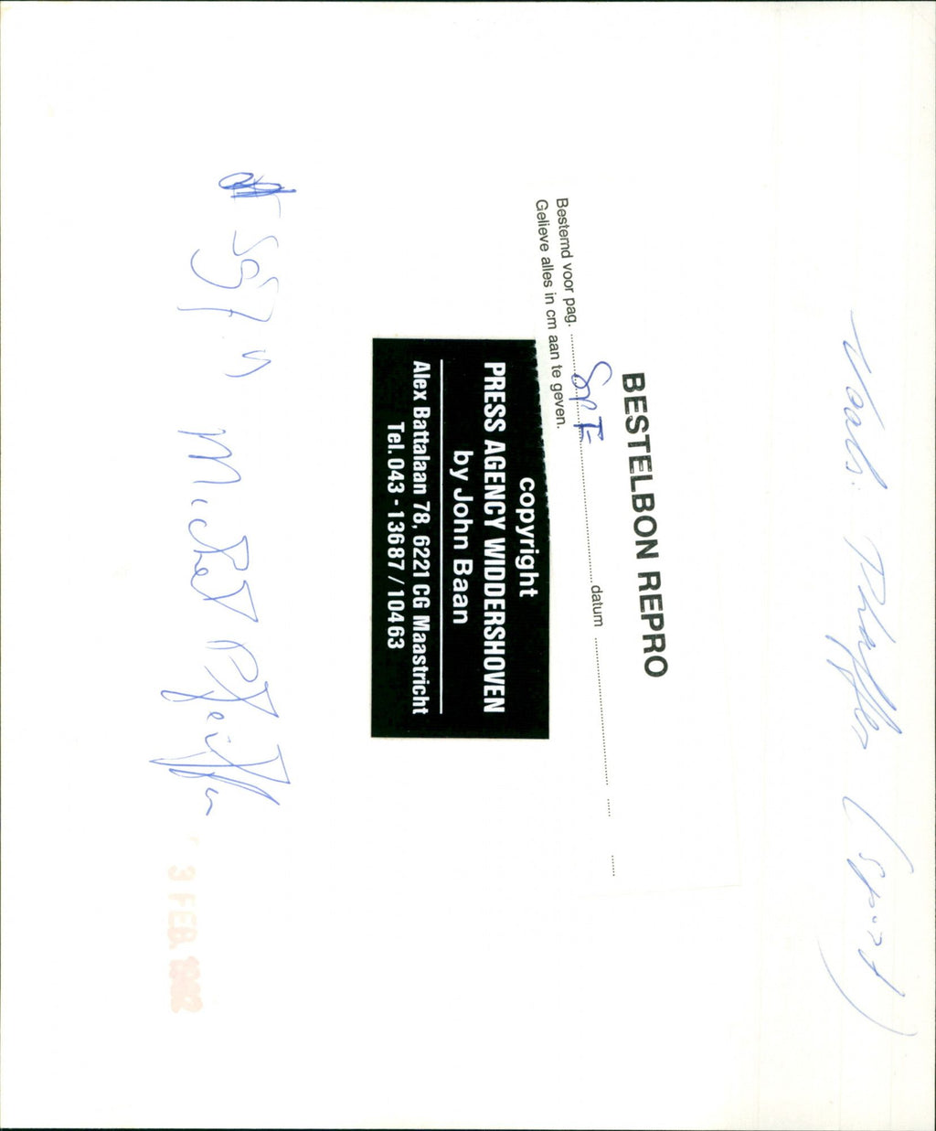 All the original vintage images are sold without watermarks. The prints are all over 30 years old and have been in the storage of the newspapers for decades. We sell them in the same conditions they were given to us by the archives.