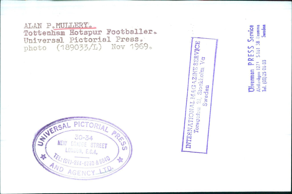 A photo of Alan P. Mullery, a footballer for Tottenham Hotspur, taken in November 1969 by Universal Pictorial Press. A photo of Alan P. Mullery, a footballer for Tottenham Hotspur, taken in November 1969 by Universal Pictorial Press.