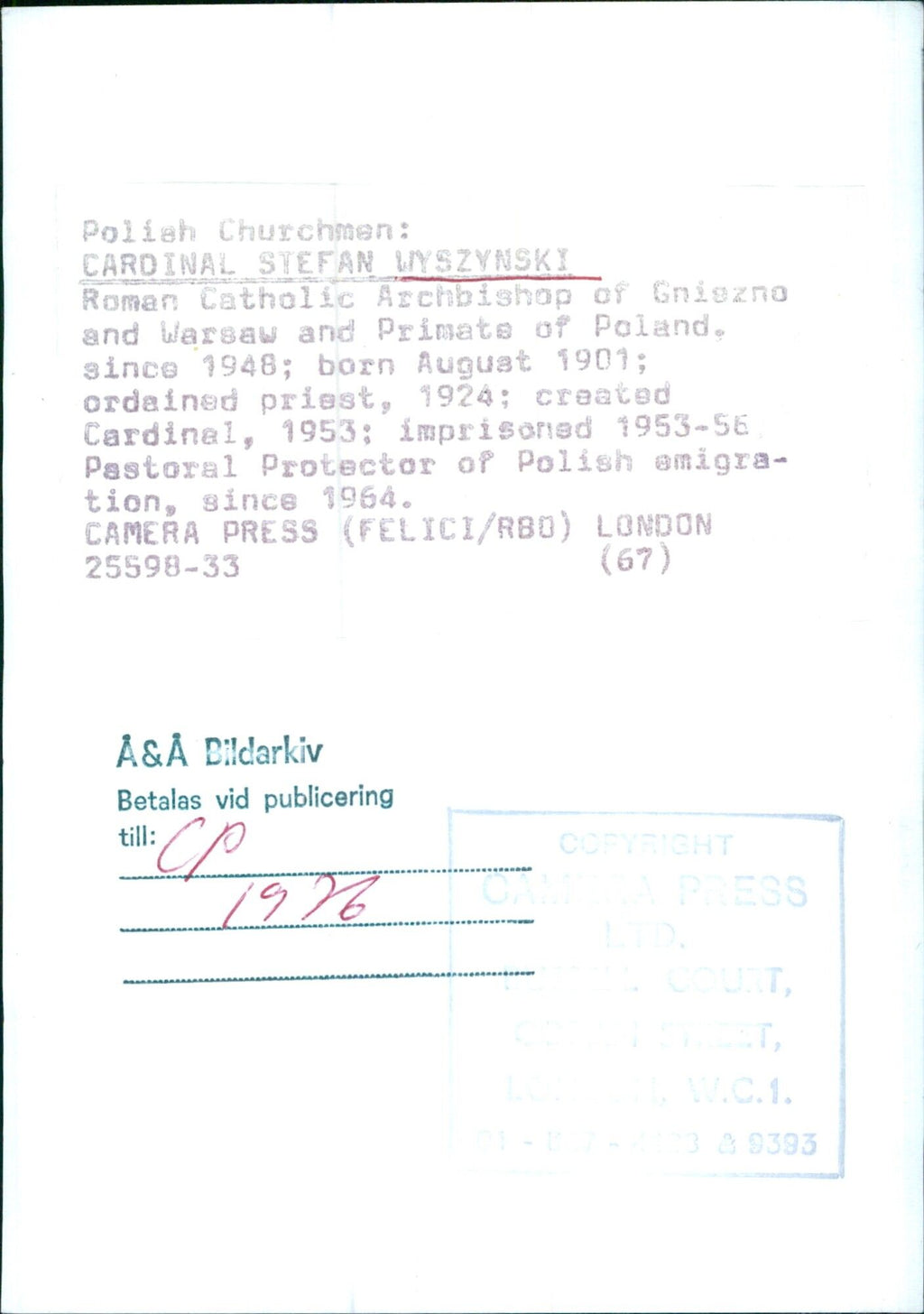 All our press photos are LIMITED ARCHIVE ORIGINALS - they are the actual prints that were used by the newspapers, they are not reprints or digital prints produced by us. All the prints are at least 30 years old and up to 100 years old.