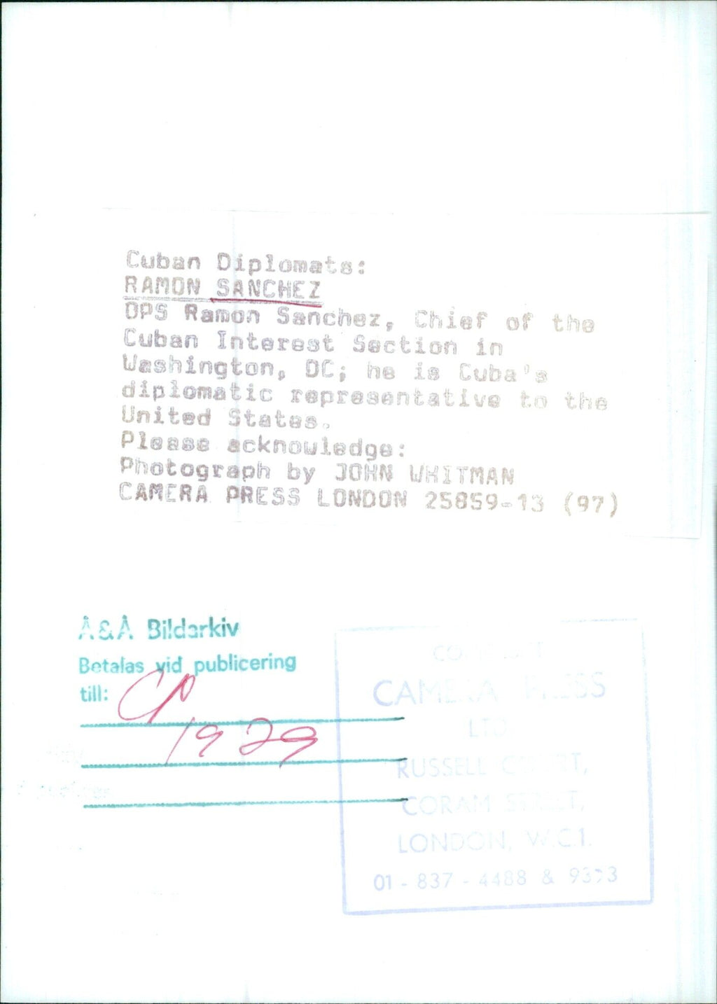 Ramon Sanchez, Chief of the Cuban Interest Section in Washington, DC; he is Cuba's diplomatic representative to the United States. Ramon Sanchez, Chief of the Cuban Interest Section in Washington, DC; he is Cuba's diplomatic representative to the United States.