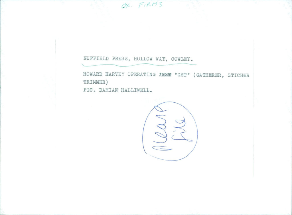 Howard Harvey operating a machine at a printing firm in Cowley. - Vintage Photograph
