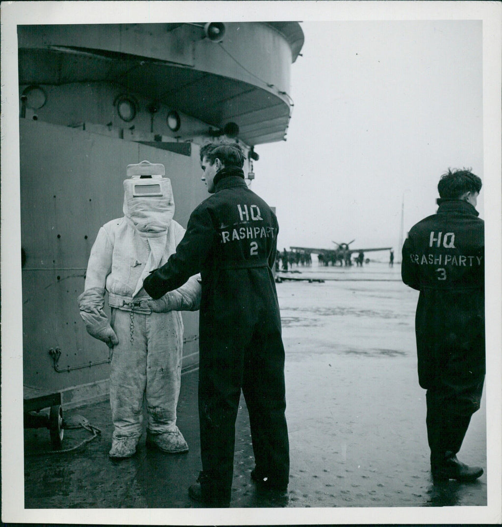 Members of the 12th Jarl VTIVE Z squadron attend a hangar party at HQ Rashpart 2, celebrating the successful conclusion of the Grand Ch com h he es mission. - Vintage Photograph