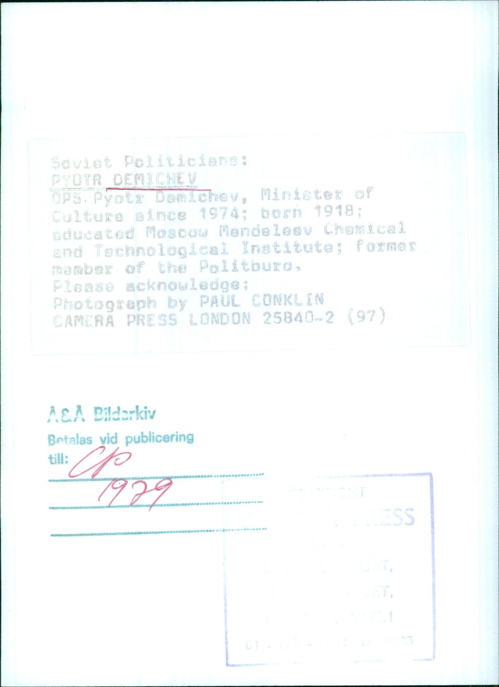 All our press photos are LIMITED ARCHIVE ORIGINALS - they are the actual prints that were used by the newspapers, they are not reprints or digital prints produced by us. All the prints are at least 30 years old and up to 100 years old.