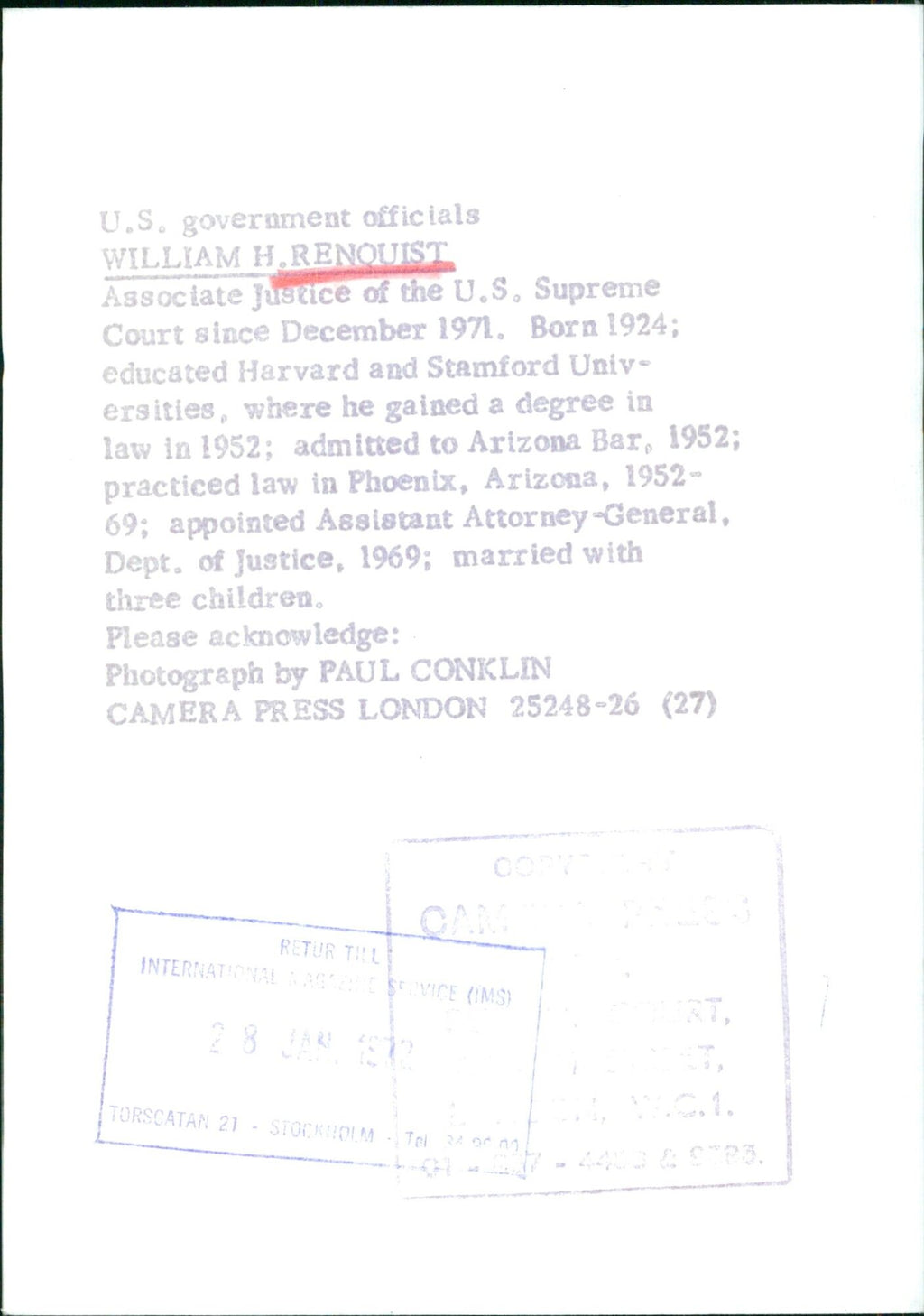 U.S. Supreme Court Associate Justice William H. Rehnquist - Vintage Photograph