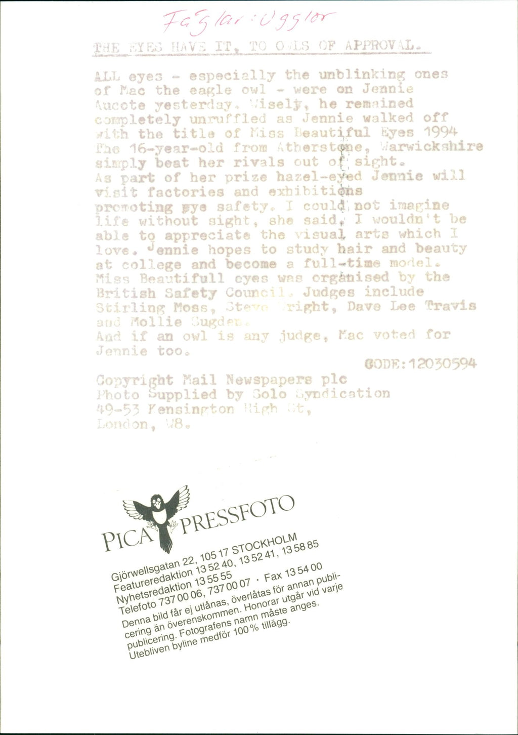 All our press photos are LIMITED ARCHIVE ORIGINALS - they are the actual prints that were used by the newspapers, they are not reprints or digital prints produced by us. All the prints are at least 30 years old and up to 100 years old.