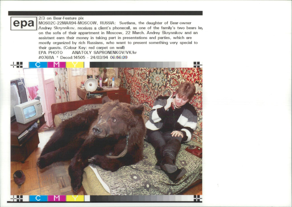Animal Brown Bear:Svetlana the daughter of bear owner. - Vintage Photograph
