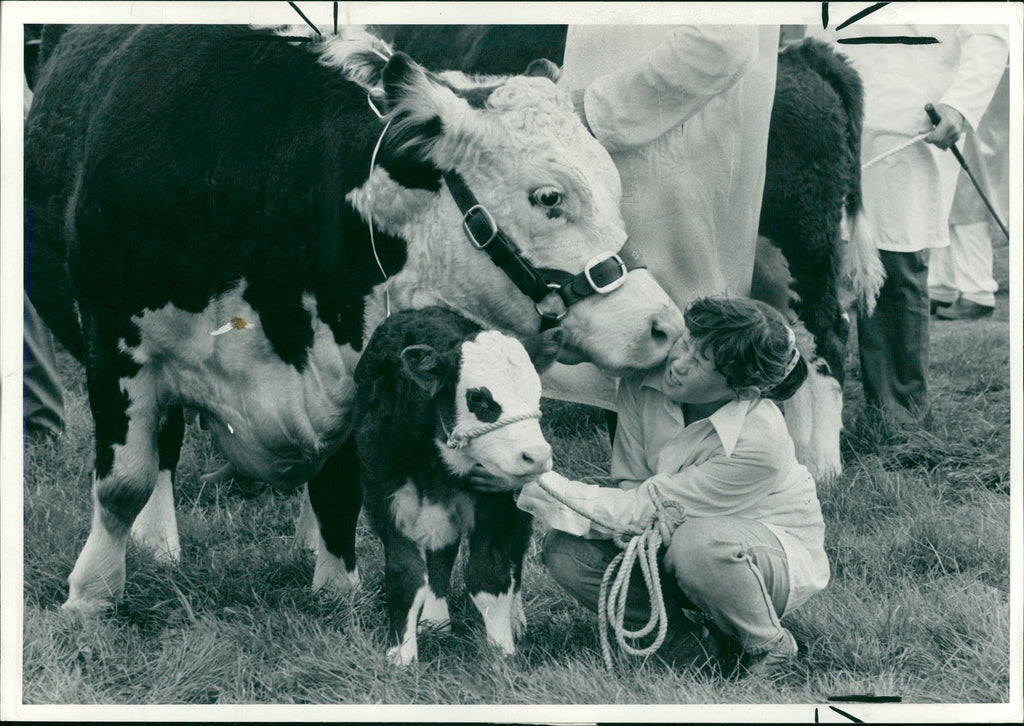 Animal,Cattle: Calf love. - Vintage Photograph