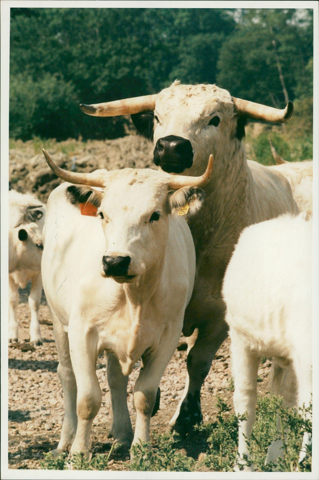 Animal, Cattle: White Park Cattle. - Vintage Photograph