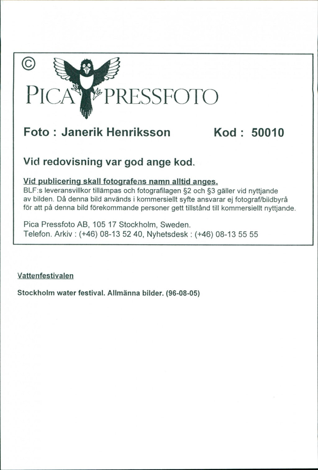 All the original vintage images are sold without watermarks. The prints are all over 30 years old and have been in the storage of the newspapers for decades. We sell them in the same conditions they were given to us by the archives.