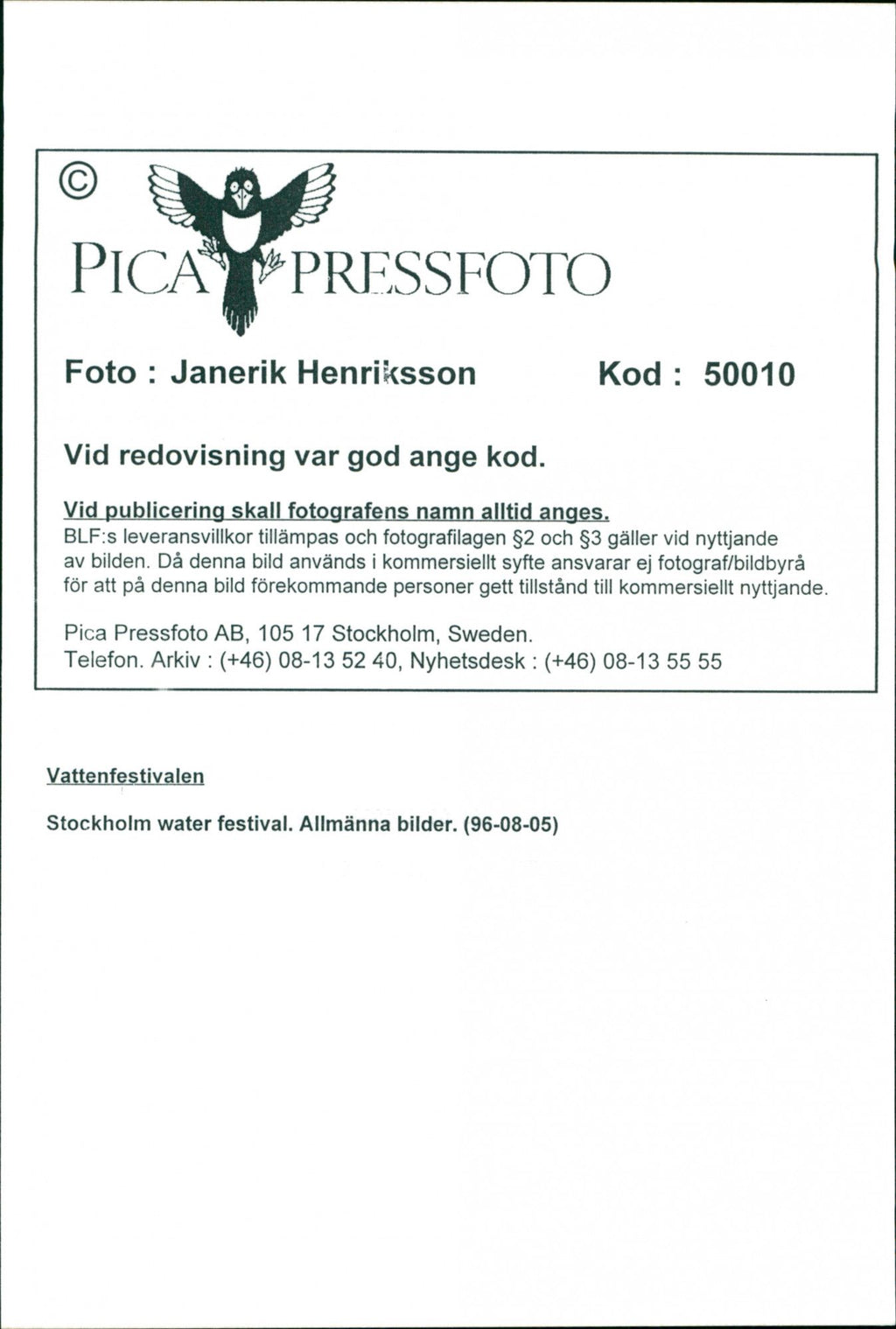 All the original vintage images are sold without watermarks. The prints are all over 30 years old and have been in the storage of the newspapers for decades. We sell them in the same conditions they were given to us by the archives.