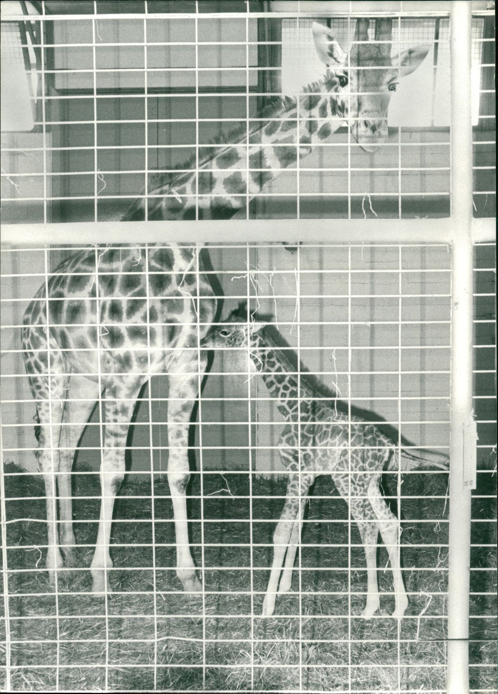 Animal Giraffe looking out through the bars of her enclosure at Marwell Park Zoo. - Vintage Photograph