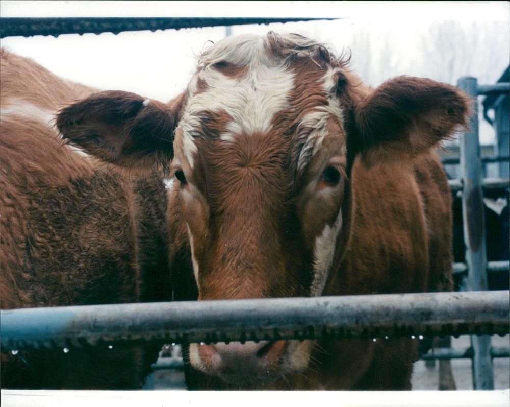 Animals Cattle waiting to be auction. - Vintage Photograph