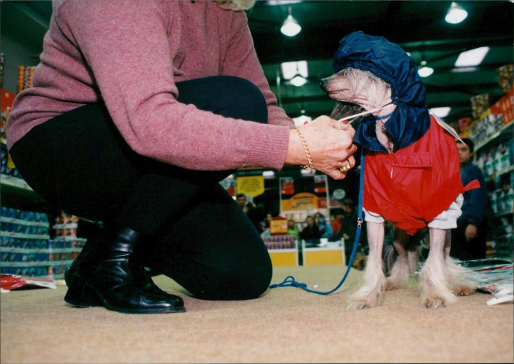 Dandini, the Chinese crested, gets set for winter weather. Dandini, the Chinese crested, gets set for winter weather.