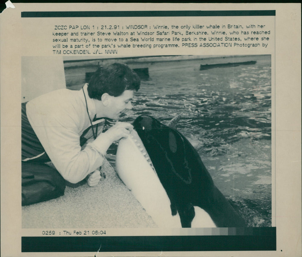Winnie the only killer whale in Britain with her keeper & trainer Steve Walton at Windsor Safari Park Winnie the only killer whale in Britain with her keeper & trainer Steve Walton at Windsor Safari Park