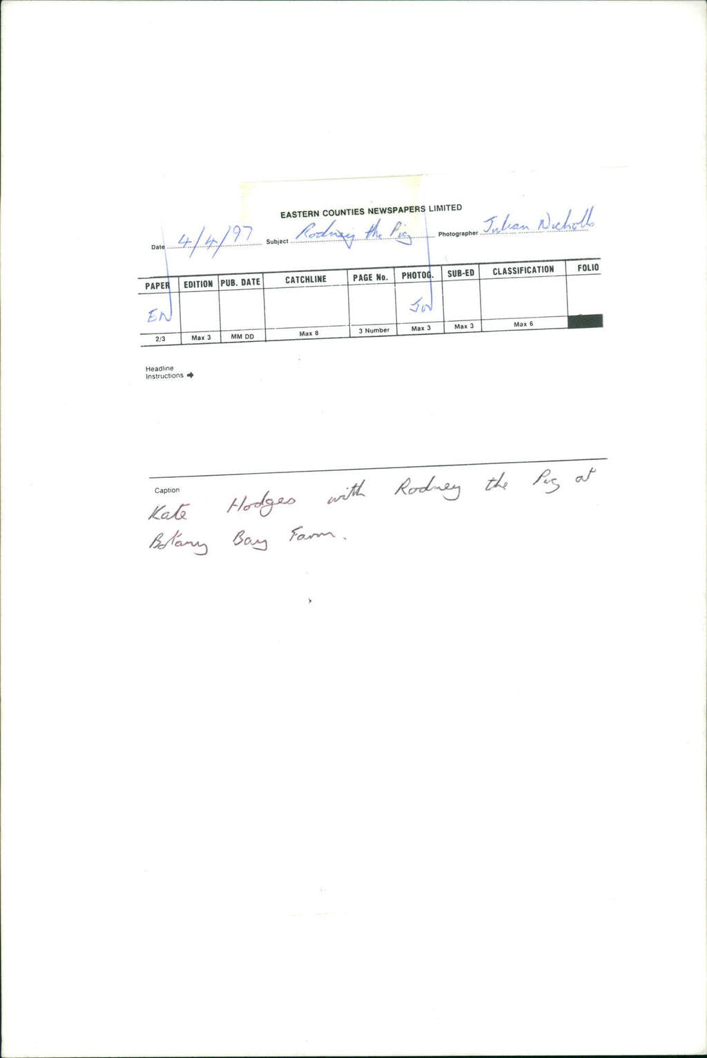 Kate Hodges with Rodney the pig at Botany Bay Farm. Kate Hodges with Rodney the pig at Botany Bay Farm.