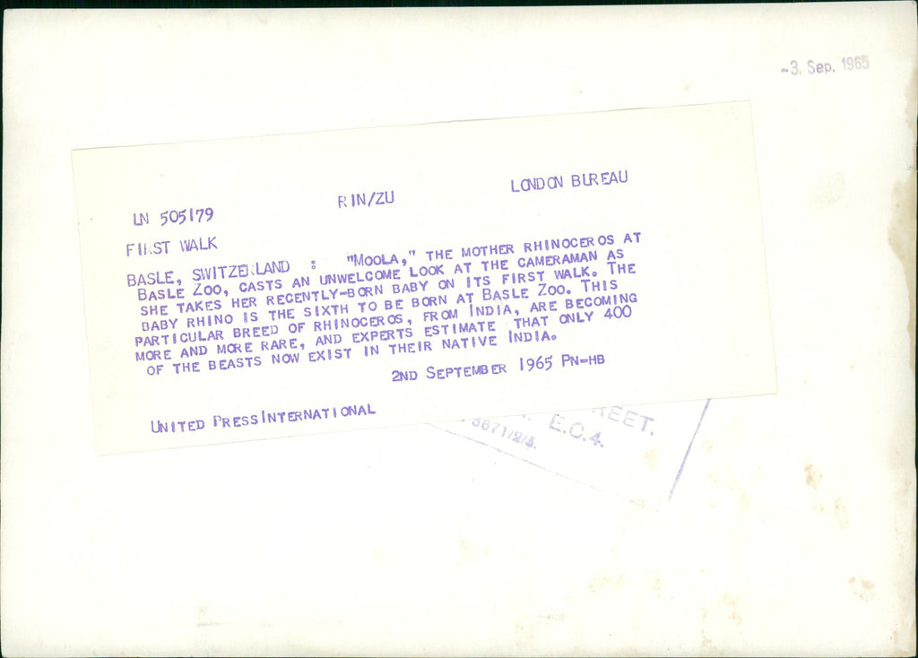 THE MOTHER RHINOCEROS AT BASLE ZOO THE MOTHER RHINOCEROS AT BASLE ZOO