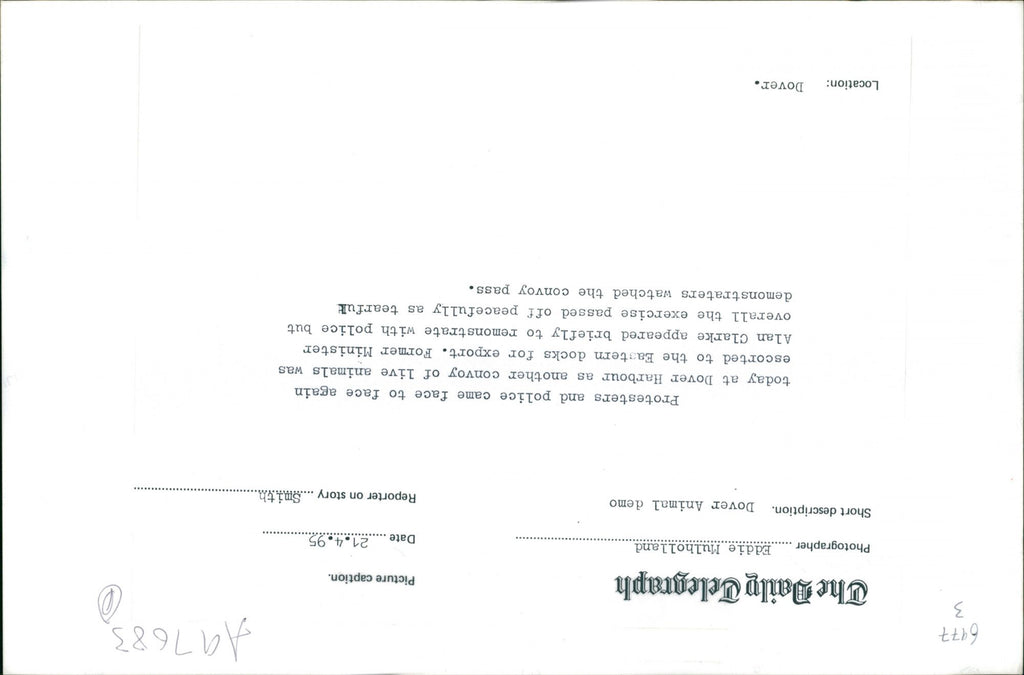 Protesters and police cane face to face again today at Dover Harbour as another convoy of live animals was escorted to the Eastern docks for export. Protesters and police cane face to face again today at Dover Harbour as another convoy of live animals was escorted to the Eastern docks for export.