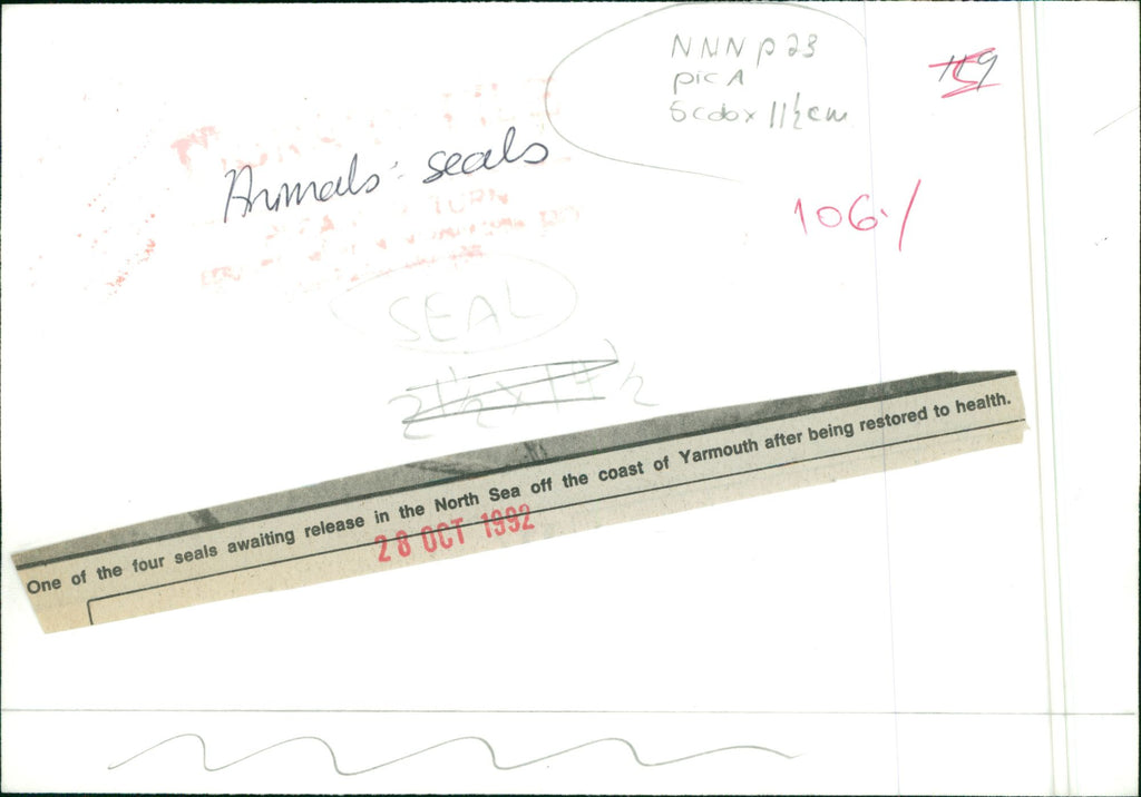 One of the four seals awaiting release in the North Sea off the coast of Yarmouth after being restored to health. One of the four seals awaiting release in the North Sea off the coast of Yarmouth after being restored to health.