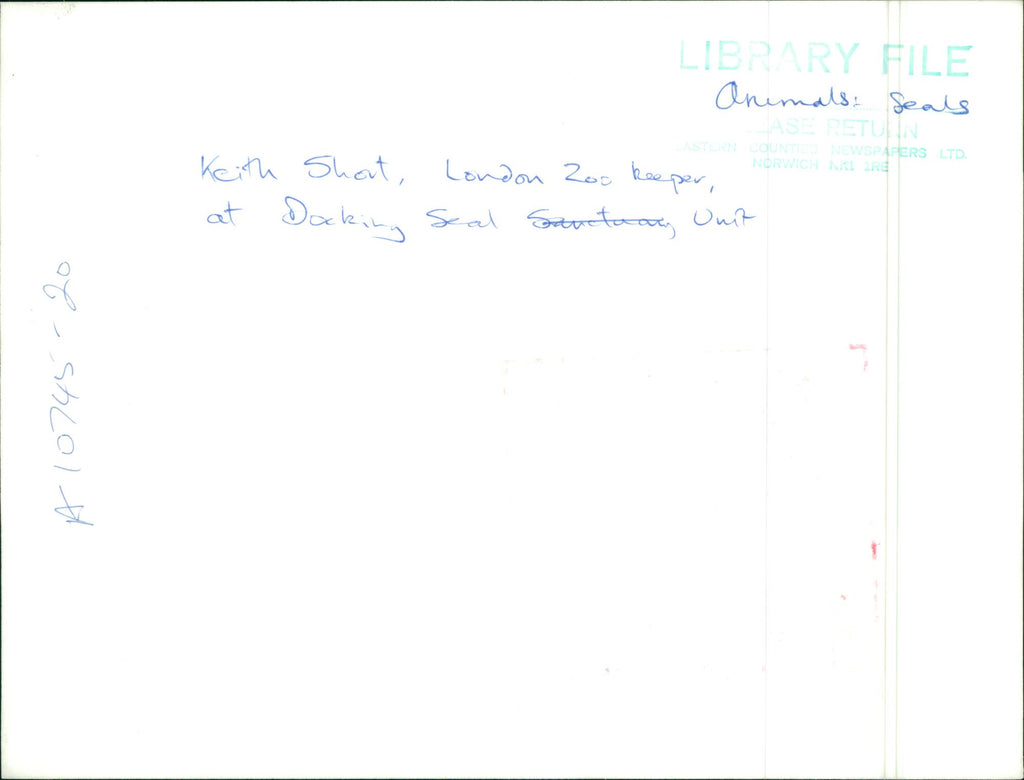 Keith Short, London Zoo keeper at Docking Seal Unit. Keith Short, London Zoo keeper at Docking Seal Unit.