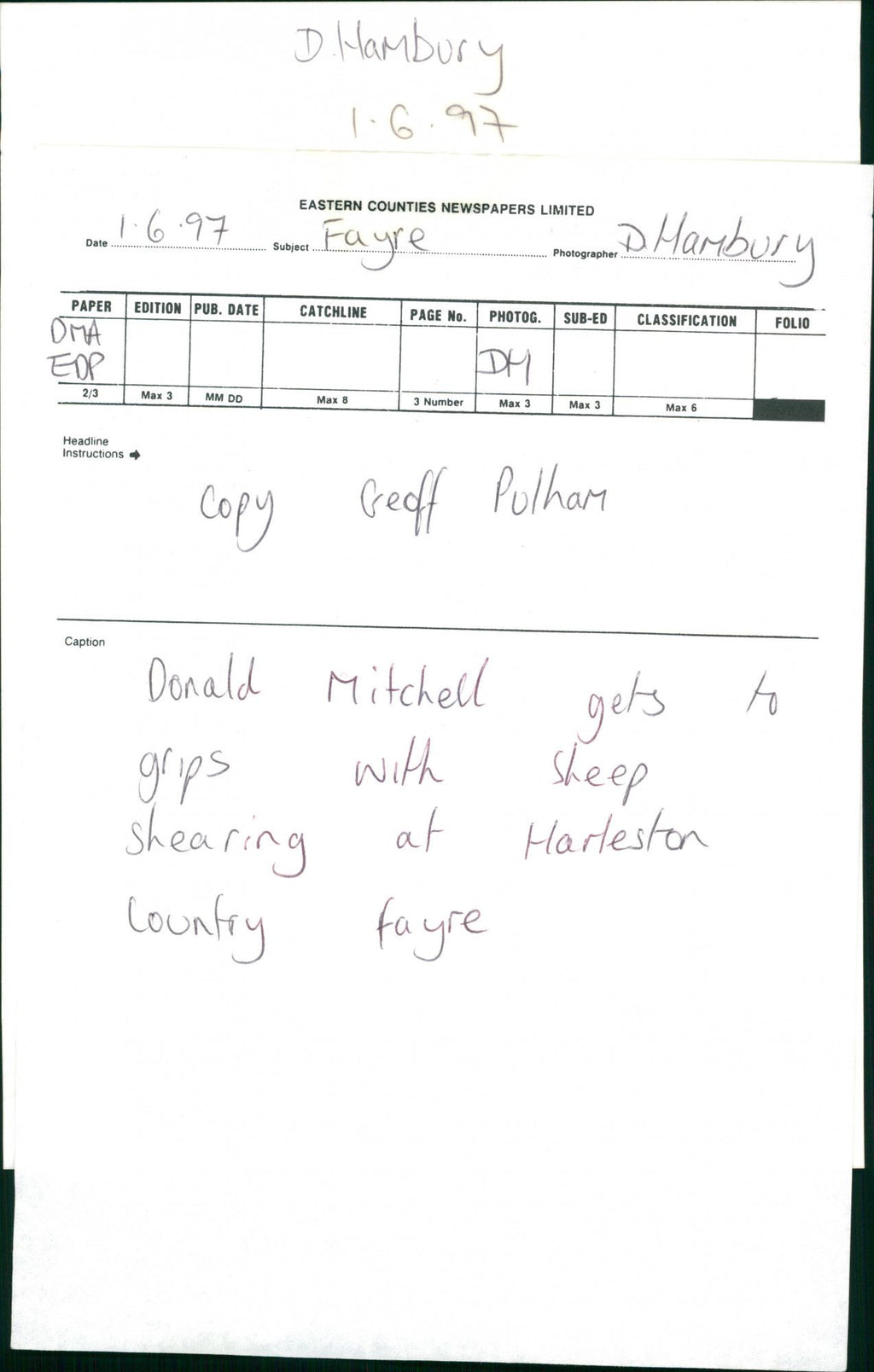 Donald Mitchell gets to grips with sheep shearing at Harleston Country fayre. Donald Mitchell gets to grips with sheep shearing at Harleston Country fayre.