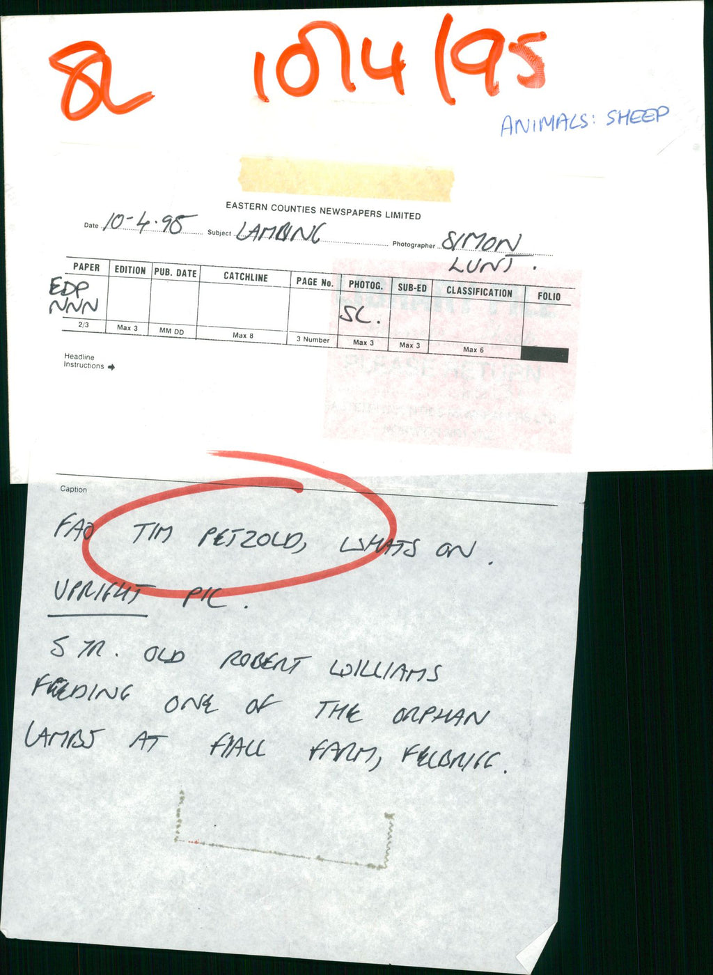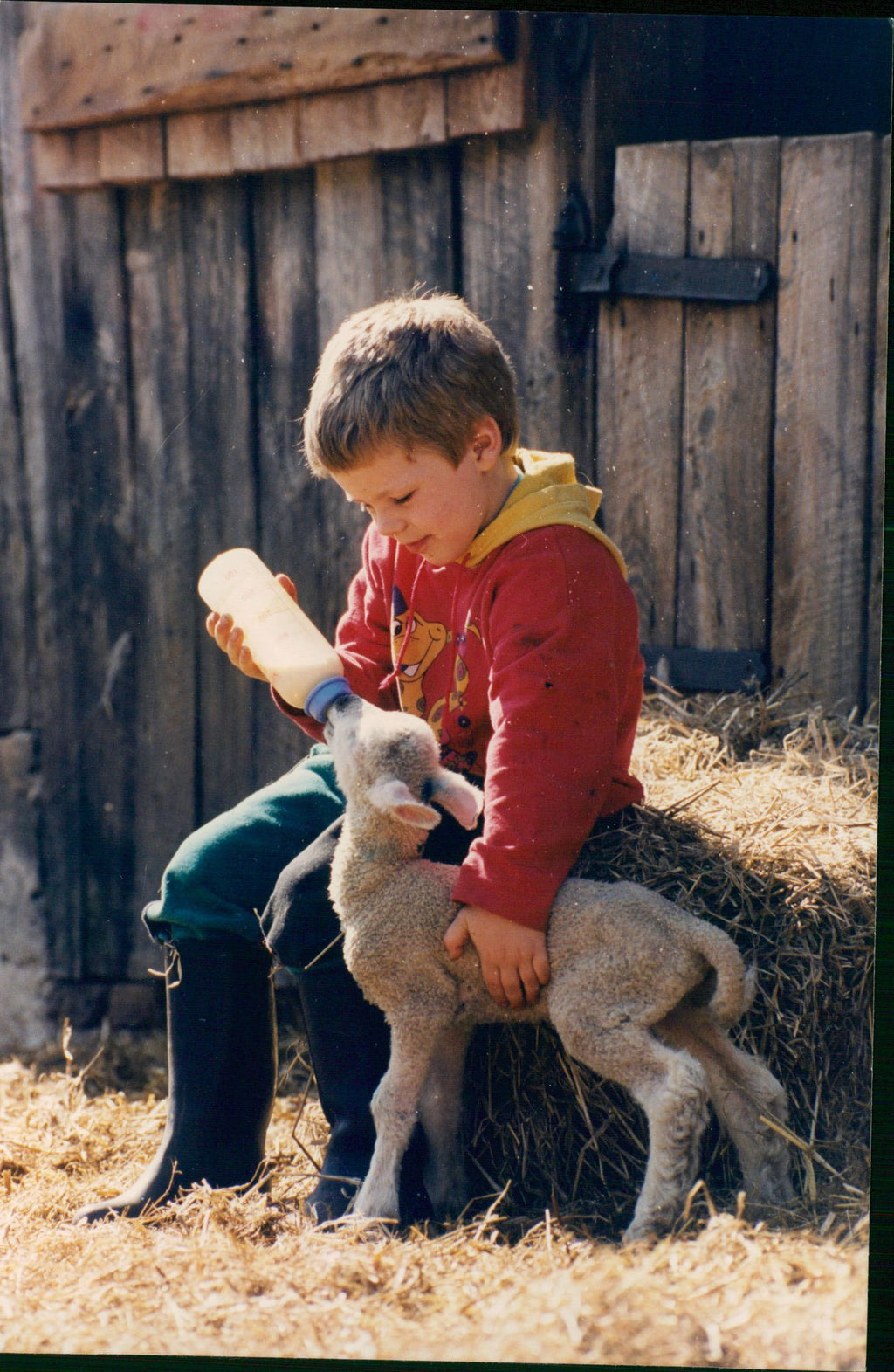 Old Robert Williams feeding one of the orphan lambs at hall farm. Old Robert Williams feeding one of the orphan lambs at hall farm.