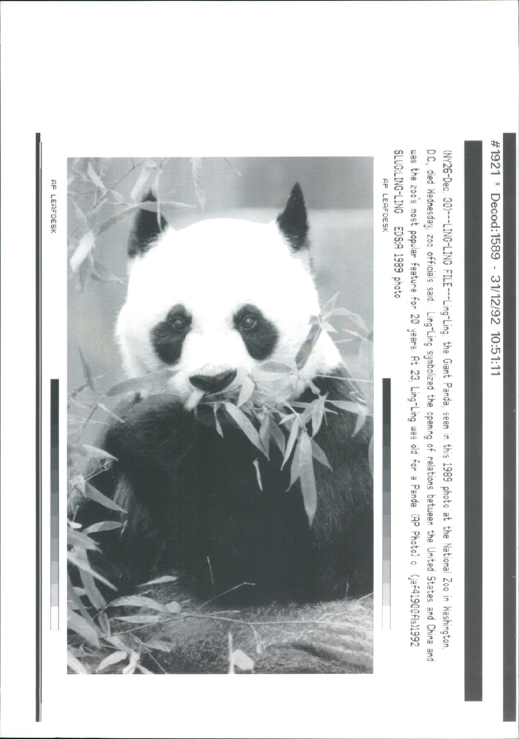Ling-ling the giant panda sen in this 1989 photo at the National Zoo in Washington. Ling-ling the giant panda sen in this 1989 photo at the National Zoo in Washington.