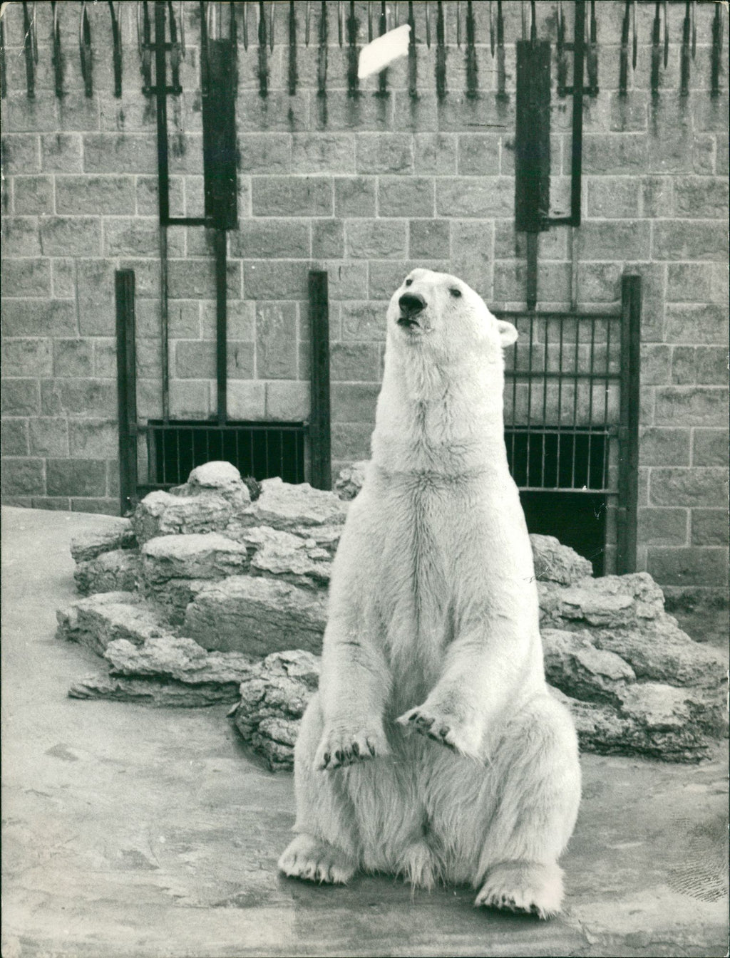 This polar bear in the enclosure at Chessinton Zoo, Surrey is very willing to "beg" for visitors. This polar bear in the enclosure at Chessinton Zoo, Surrey is very willing to "beg" for visitors.