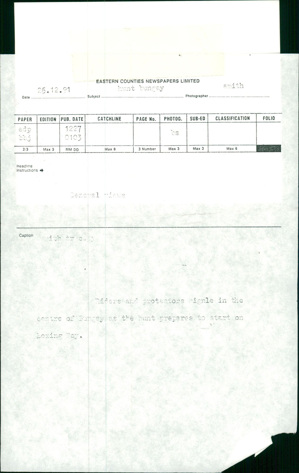 Riders and protestors mingle in the centre of Bungay as the hunt prepares to start on Boxing Bay. Riders and protestors mingle in the centre of Bungay as the hunt prepares to start on Boxing Bay.