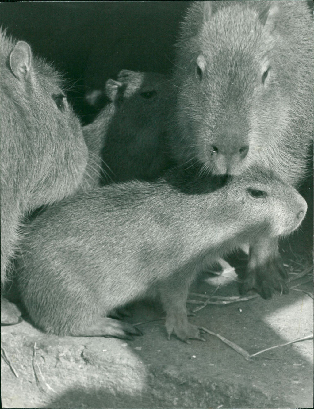 TWO OF THE YOUNG CAPYBARAS, WITH THEIRPROUD PARENTS TWO OF THE YOUNG CAPYBARAS, WITH THEIRPROUD PARENTS