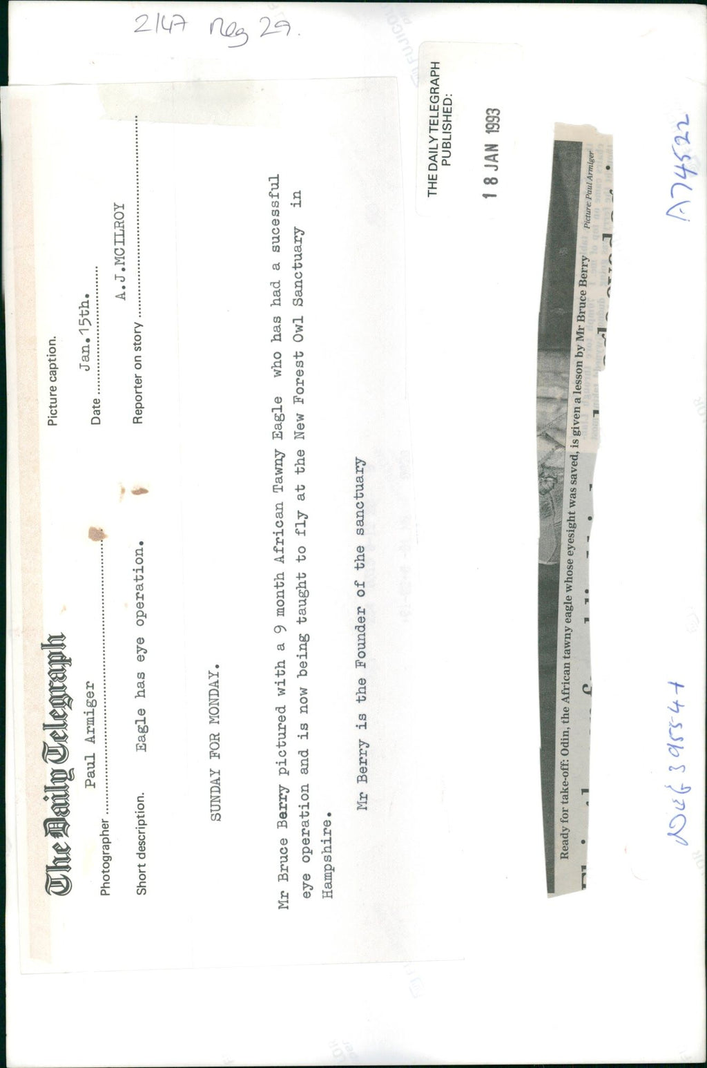 Bruce Berry with a African tawny eagle. - Vintage Photograph