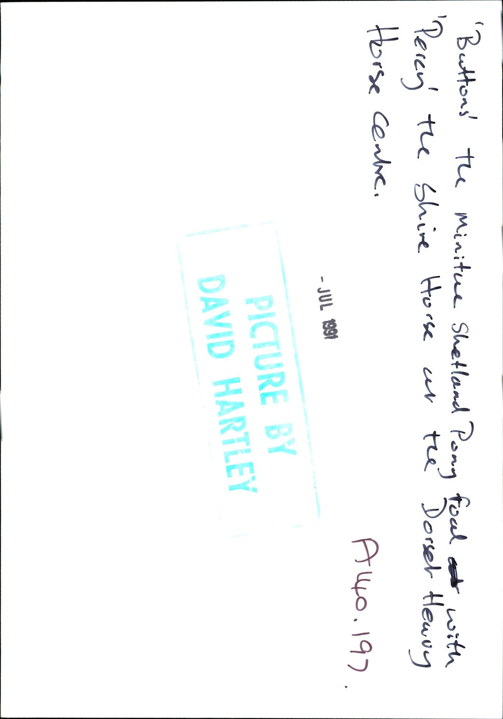 'Buttons' the Miniature Horse Shetland Pony with 'Percy', the shire horse at the Dorset Heavy Horse Centre. 'Buttons' the Miniature Horse Shetland Pony with 'Percy', the shire horse at the Dorset Heavy Horse Centre.