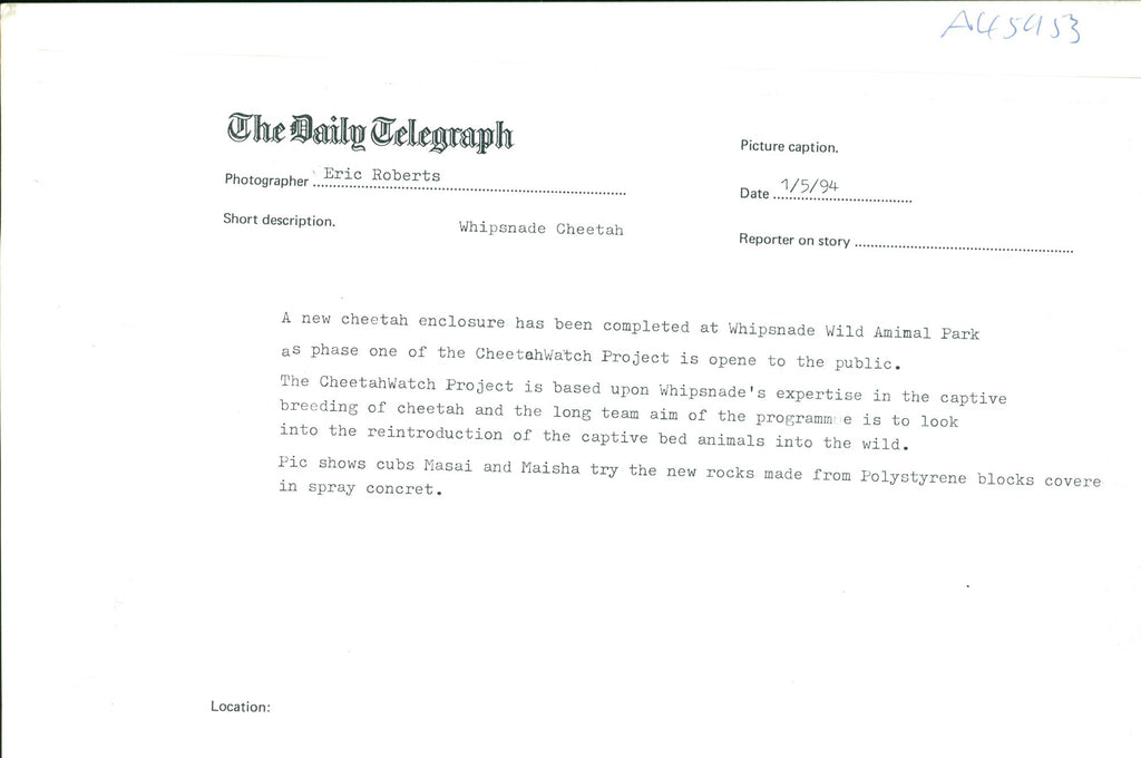 Cheetah Cub Masai and Maisha at Whipsnade Zoo - Vintage Photograph