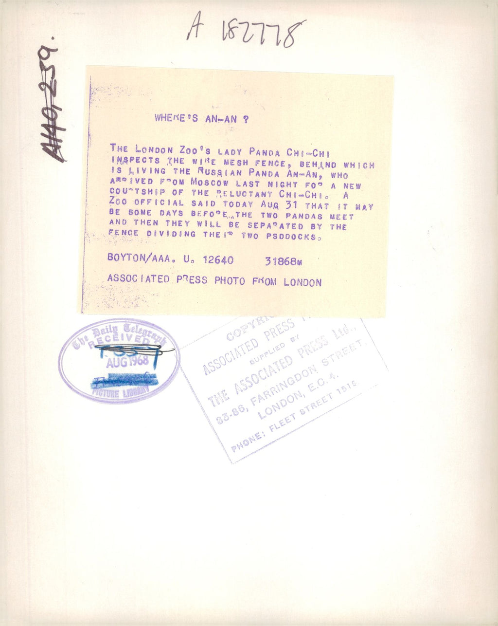 All our press photos are LIMITED ARCHIVE ORIGINALS - they are the actual prints that were used by the newspapers, they are not reprints or digital prints produced by us. All the prints are at least 30 years old and up to 100 years old.