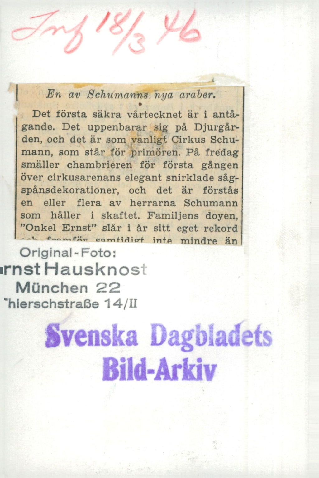 Circus Shcumann. One of Schumann's new Arabs - Vintage Photograph