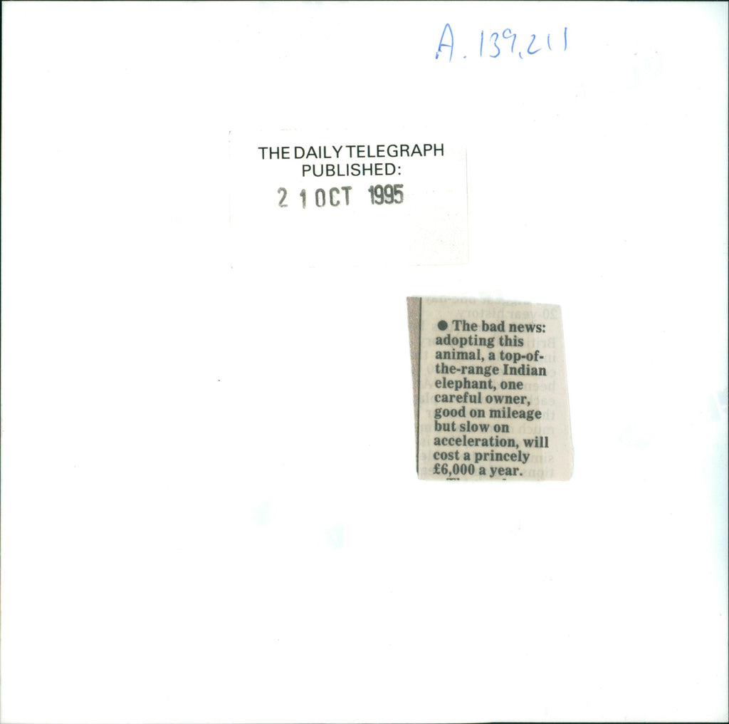 The bad news: adopting this animal, a top- of the range Indian elephant, one careful owner, good on mileage but slow on acceleration, will cost a princely £6,000 a year. The bad news: adopting this animal, a top- of the range Indian elephant, one careful owner, good on mileage but slow on acceleration, will cost a princely £6,000 a year.
