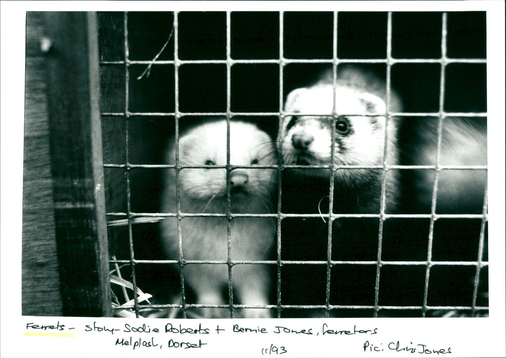 Ferrets - story - Sadie Roberts + Bernie James, ferreters, Melplash, Dorset, 11/93, Pic: Chris Jones
