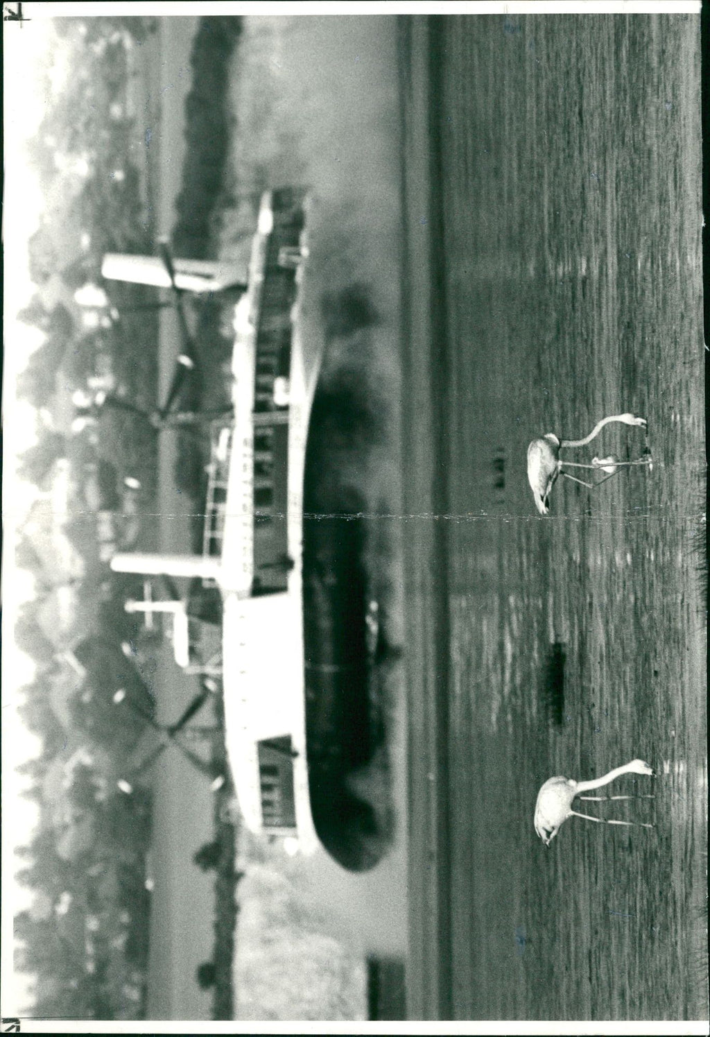 Flamingo Bird:In the path of a hovercraft. - Vintage Photograph