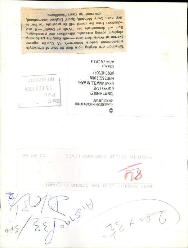 Footballer Gary Mabbutt with a circus elephant - Vintage Photograph