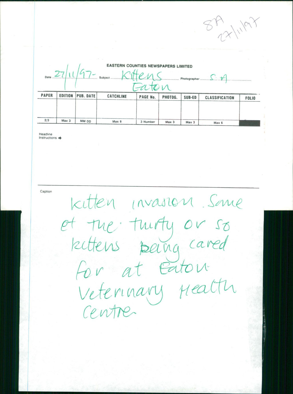 Kitten invasion. Same of the thirty or 50 kittens being cared for at Eaton Veterinary Health Centre. Kitten invasion. Same of the thirty or 50 kittens being cared for at Eaton Veterinary Health Centre.