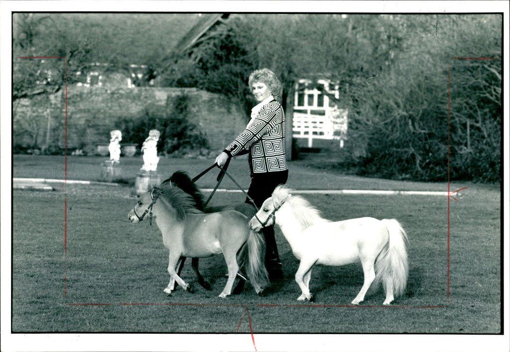 Lady Rosamund Fisher seen with her Falabella Miniature Horses Pale horses Argentina of Kelverstone Chestnut Horse Petra of Kelverstone Dark Horse Karla of Kelverstone at the Kilverstone Horse Stud, Latin American Zoo. Thetford Norfolk. Lady Rosamund Fisher seen with her Falabella Miniature Horses Pale horses Argentina of Kelverstone Chestnut Horse Petra of Kelverstone Dark Horse Karla of Kelverstone at the Kilverstone Horse Stud, Latin American Zoo. Thetford Norfolk.