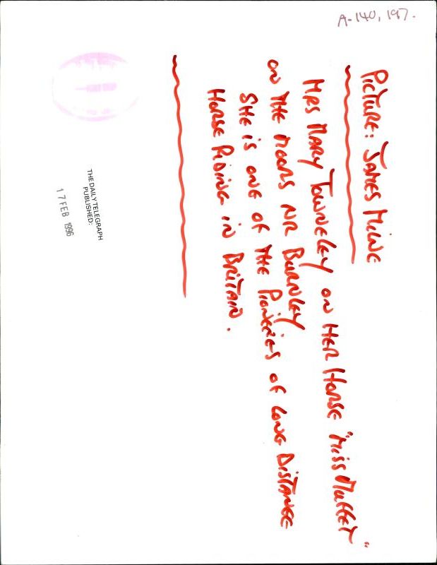Mrs. Mary Towneley out on the Moors or Burnley helping to find some of the old roads over the hills for the use of riders. Mrs. Mary Towneley out on the Moors or Burnley helping to find some of the old roads over the hills for the use of riders.