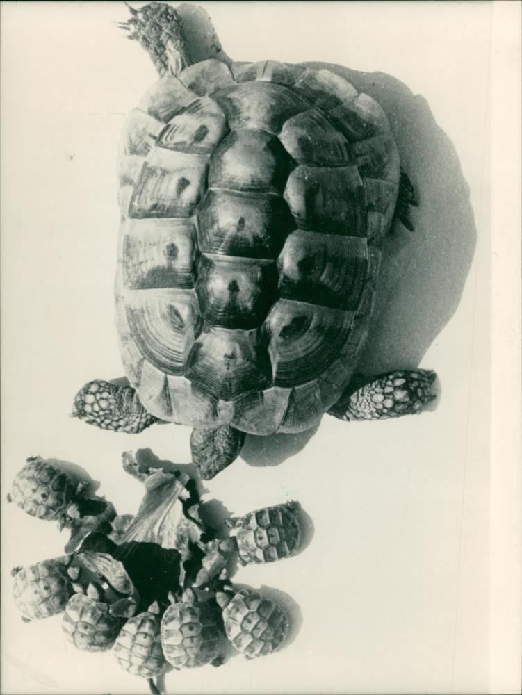 Mother tortoise shows she is not slow in coming out of her shell when it comes to taking up a protective stance while her brood of seven tuck into their meal - a lettuce leaf. Mother tortoise shows she is not slow in coming out of her shell when it comes to taking up a protective stance while her brood of seven tuck into their meal - a lettuce leaf.