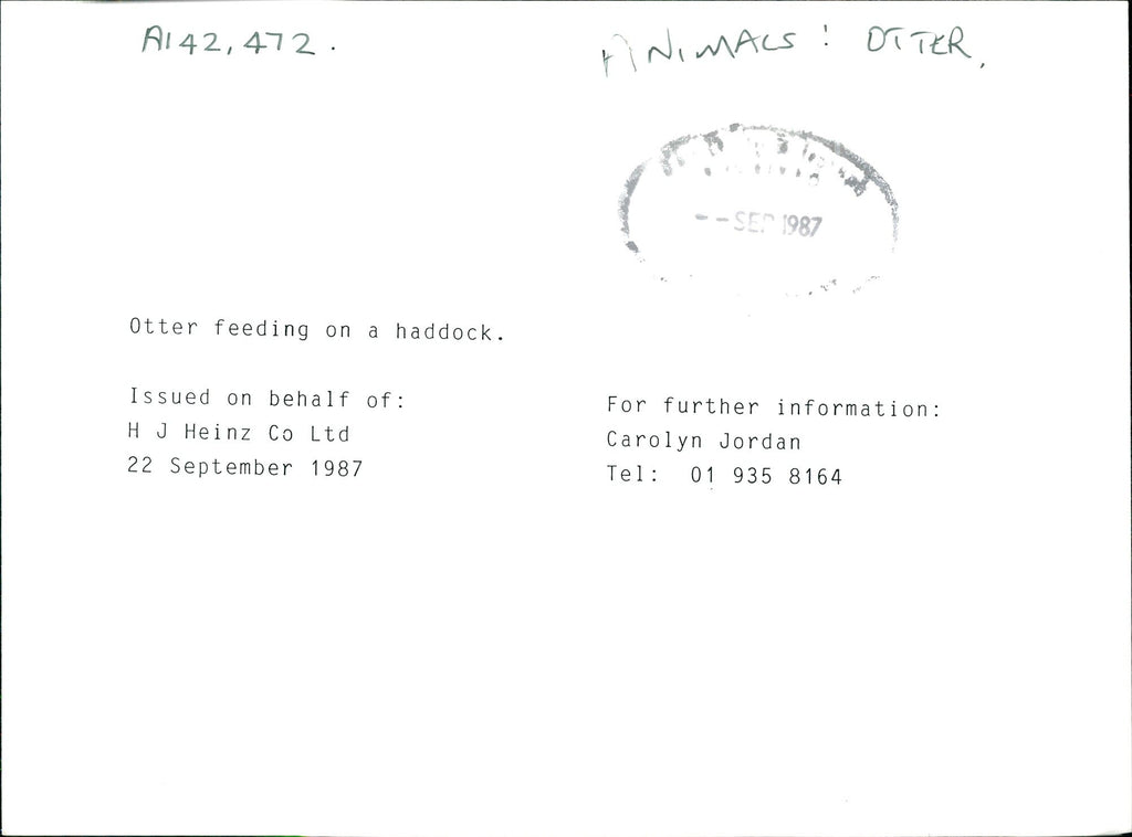 Otter feeding on a haddock. - Vintage Photograph