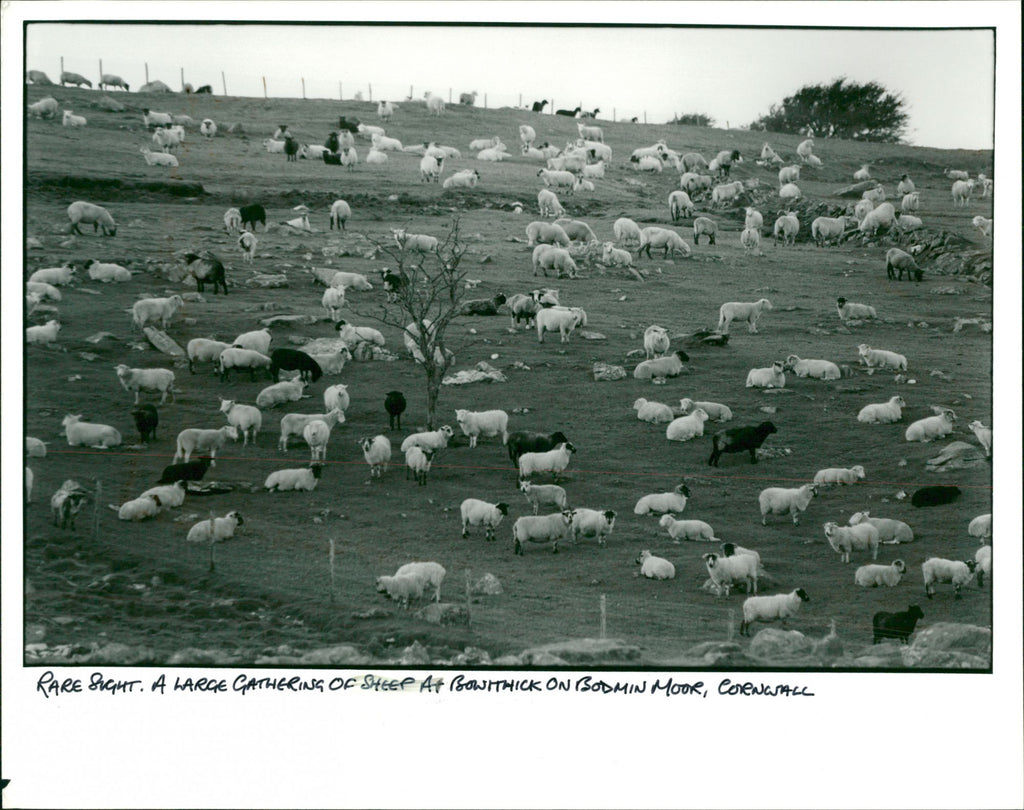 Rare sight. A large gathering of sheep at Bowithick on Bodmin Moor, Cornwall.