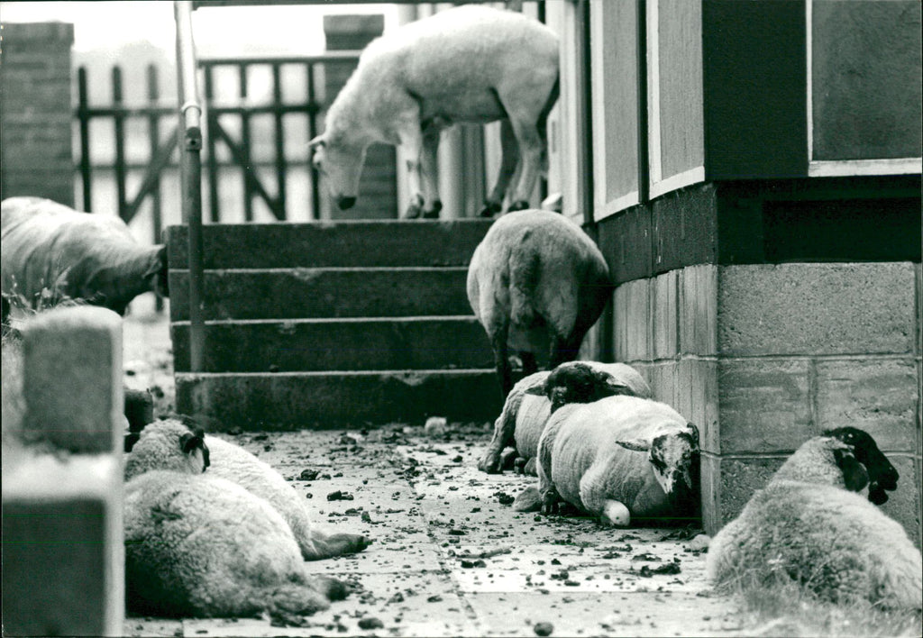 Sheep fouling the premises of the Royal Forest of Dean College in the village of Cinderford. Sheep fouling the premises of the Royal Forest of Dean College in the village of Cinderford.