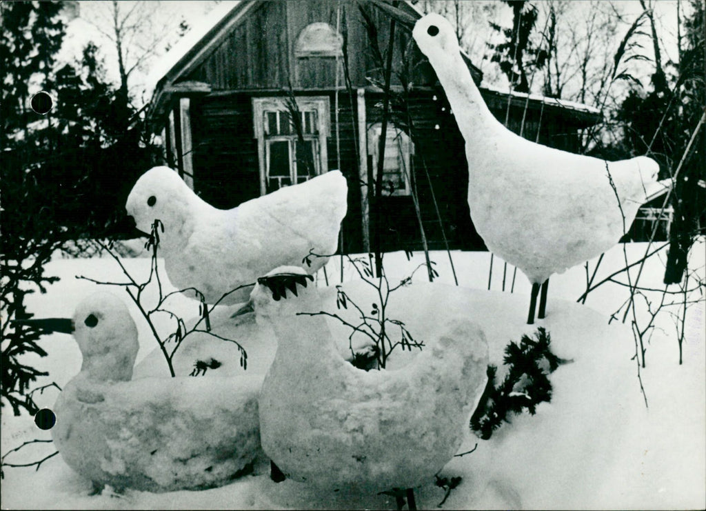 Snow sculptures on a snowy farm. Snow sculptures on a snowy farm.