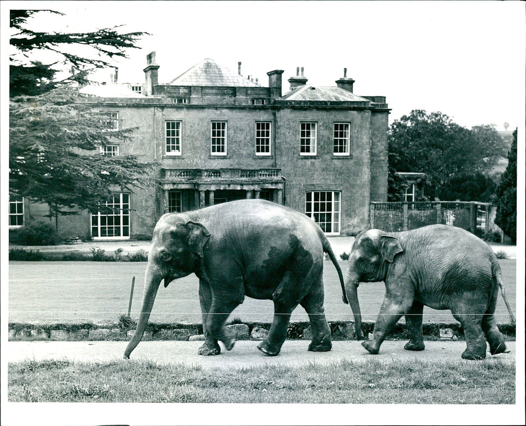 Elephant enhance the view of the historic mansion, Cricket St. Thomas House which forms the central point of the lovely estate in Somerset. Elephant enhance the view of the historic mansion, Cricket St. Thomas House which forms the central point of the lovely estate in Somerset.