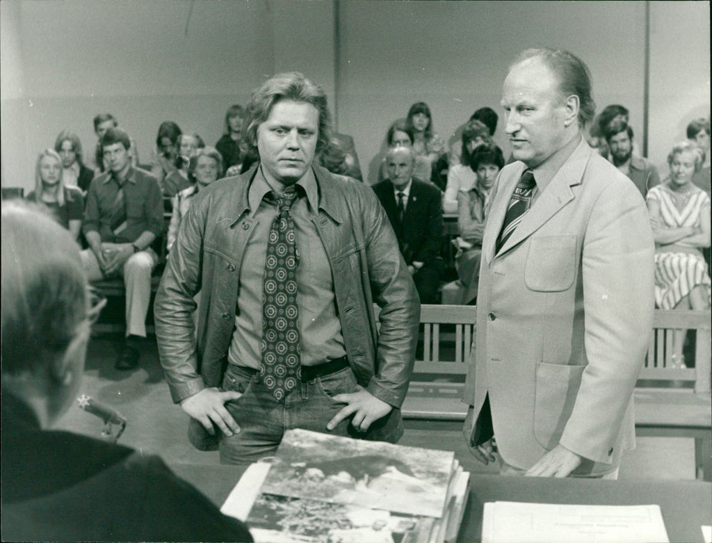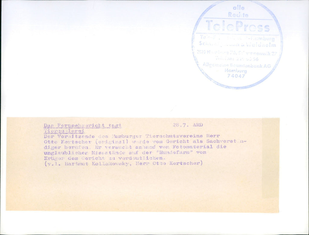 The chairman of the Hamburg animal welfare association, Mr. Otto Kertscher (original), was appointed by the court as an expert. He tried to explain the unbelievable grievances on the "dog farm" of Krüger to the court using photo material. (from left Hartmut Kollakowsky, Mr. Otto Kertscher)